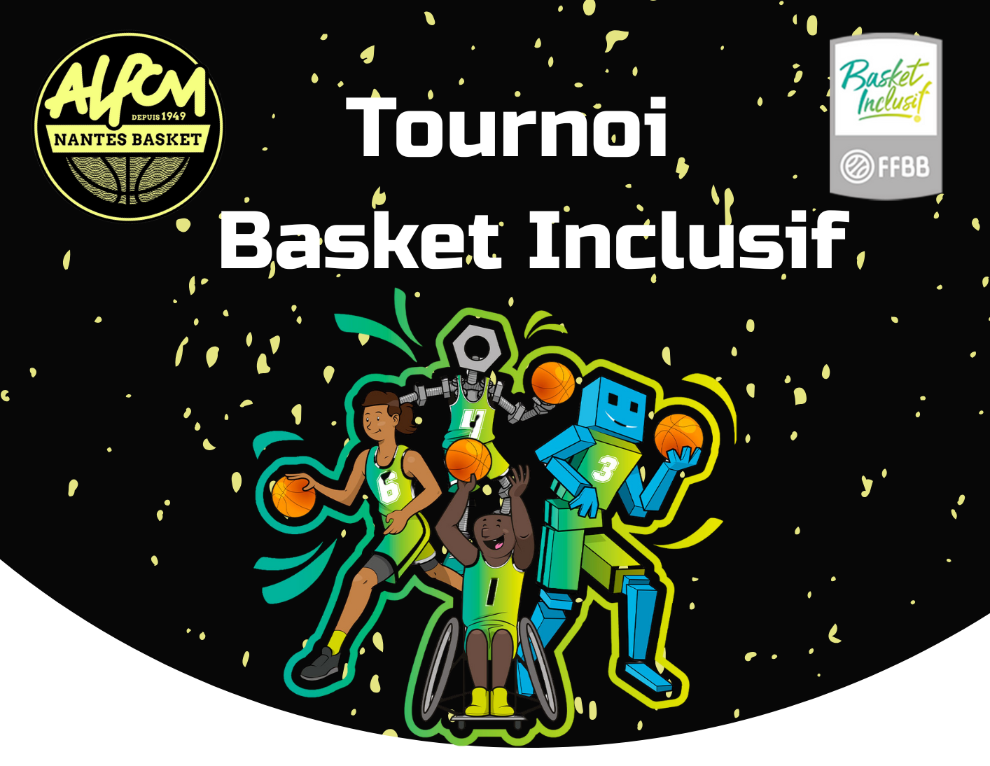 Samedi 11 avril, nous accueillons, à la salle Gaston Turpin, notre tout premier tournoi de basket inclusif ! Ouvert à tous, de 9h à 17h avec de multiples équipes de clubs de la région !